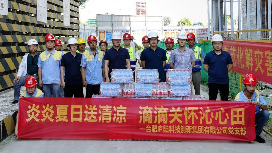 6月24日上午,廬陽(yáng)科創(chuàng)集團(tuán)副總經(jīng)理孫瑋帶隊(duì),會(huì)同區(qū)國(guó)資管理中心相關(guān)負(fù)責(zé)人來(lái)到合肥金融廣場(chǎng)項(xiàng)目工地,開展“戰(zhàn)高溫、送清涼”慰問(wèn)活動(dòng),向施工人員傳達(dá)廬陽(yáng)科創(chuàng)集團(tuán)關(guān)心關(guān)愛(ài),送上防暑降溫物品,開展安全生產(chǎn)檢查。